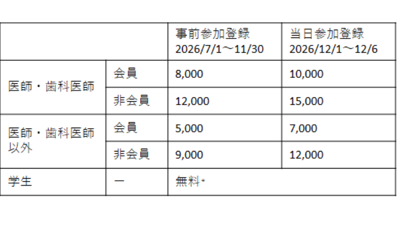 *学生は大学または専門学校に在学中の方に限ります。 学生は、当日受付時に学生証(2026年度)の提示が必要です。