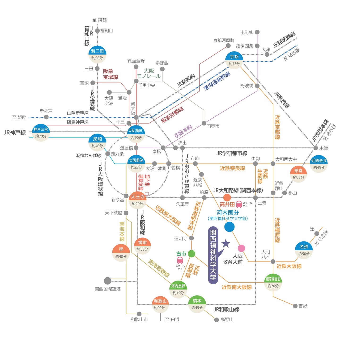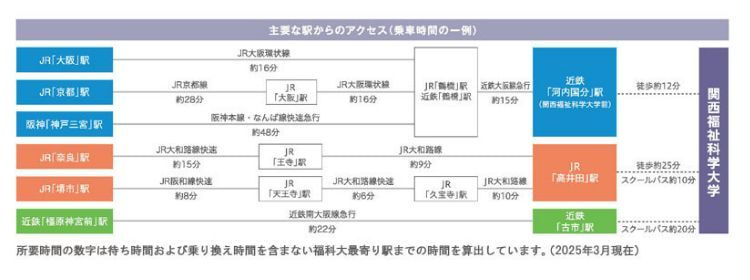 ACCESS アクセス・会場 交通のご案内 詳細は 学校法人 玉手山学園 関西福祉科学大学 ホームページをご参照ください。 最寄り駅:近鉄「河内国分駅」徒歩約12分 JR 「高井田駅」 徒歩約25分※学内および本学付近には駐車場がありませんので、お車での来校はご遠慮ください。 会場図 会 場 関西福祉科学大学〒582-0026 大阪府柏原市旭ケ丘3丁目11−1詳しいアクセスはこちら